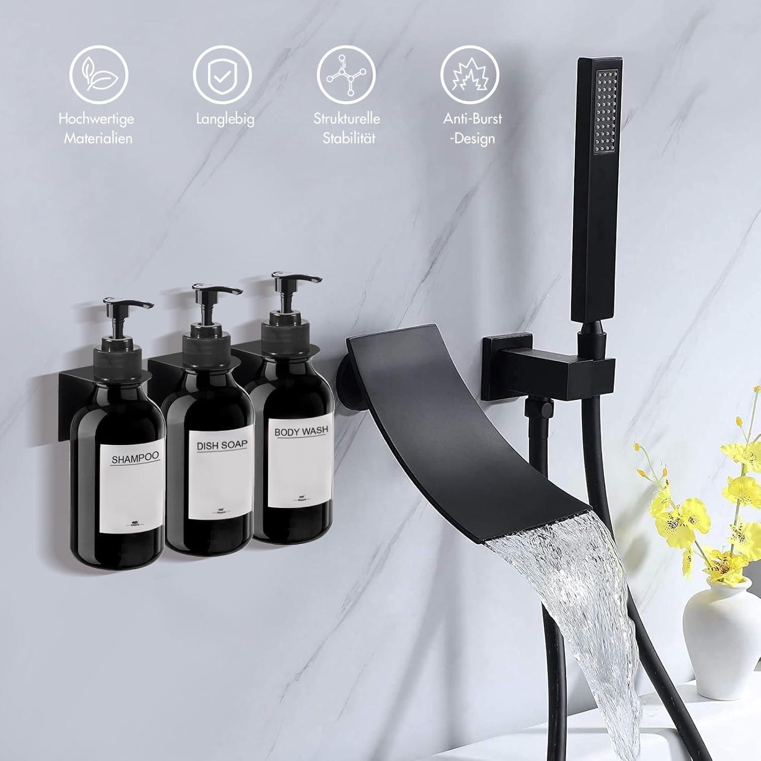 Wall Mounted Soap Dispenser No Drilling Set of 3 500 ml Soap Dispenser Wall Shampoo Dispenser Shower Detergent Dispenser Shampoo Dispenser for Kitchen Bathroom Black2